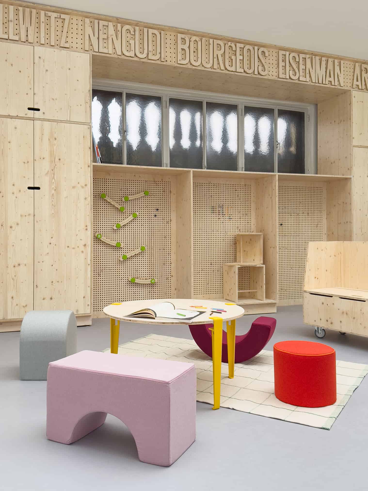 Bildunterschrift: Blick in das Eltern-Kind-Atelier, Entwurf: Viviane Bonfanti, Foto: Kunstakademie Düsseldorf